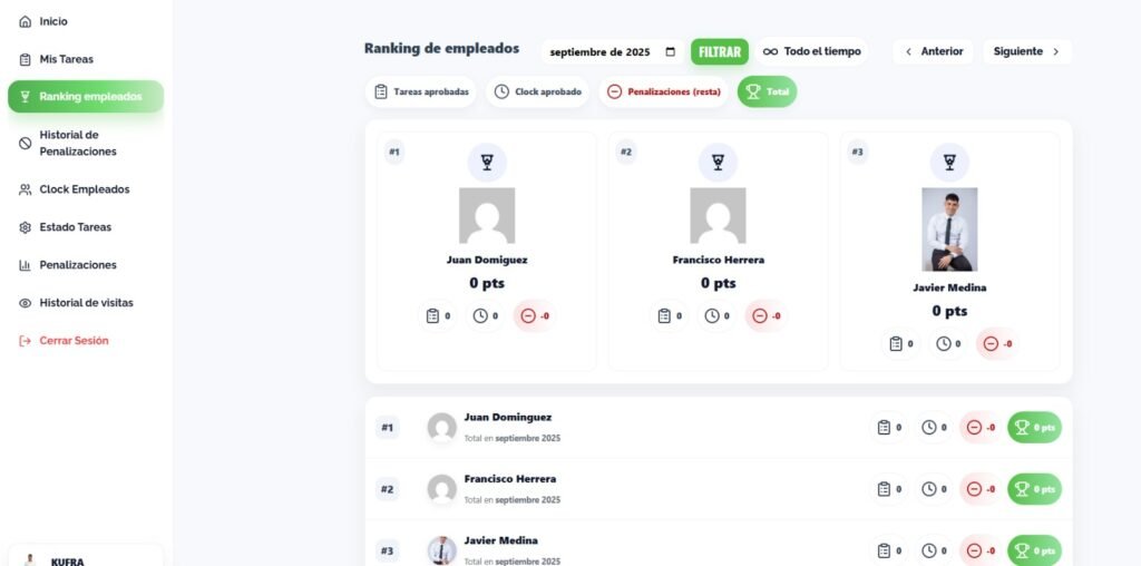Ranking de empleados según puntaje.